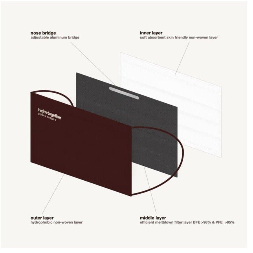 Meet Evolve Together's Alberta burgundy face mask, an everyday disposable medical mask that’s totally timeless and just a touch edgy.