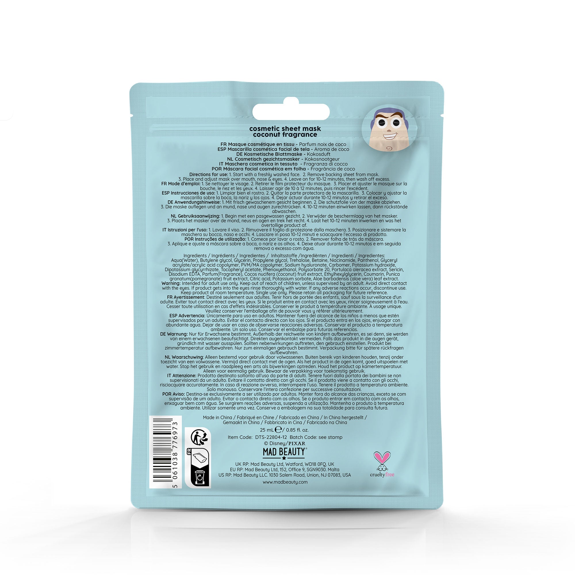 Toy Story Cosmetic Sheet Face Mask Buzz Lightyear