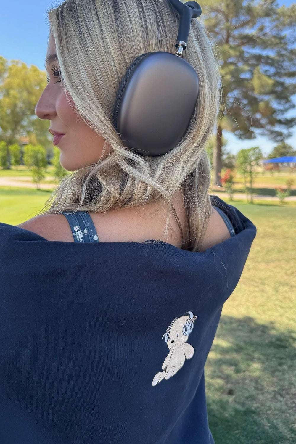 A puff-printed Happy Camp3r logo on the back brings the charm, while “do not disturb” is delicately embroidered on the right arm — subtle, but bold in intention.