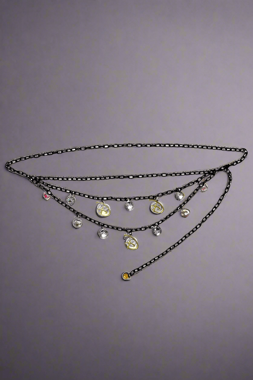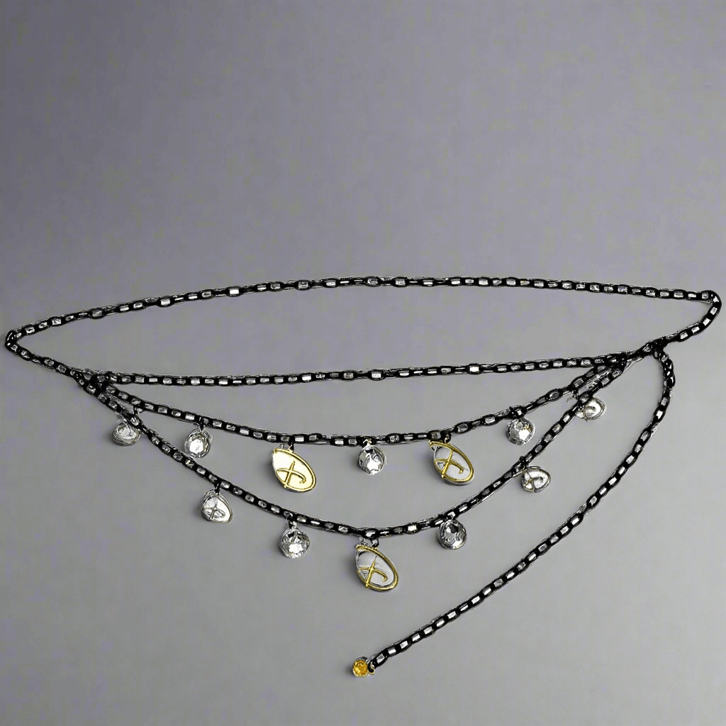 This Buckle Down Disney D Logo belt is made with a metal chain, enamel charms, and rhinestones. This belt is adjustable for all sizes up to 44.5 inches around. Perfect addition to any wardrobe, cosplay, or costume! This belt is not designed to be worn through pant loops. This product is made by Buckle-Down and Officially Licensed by Disney.